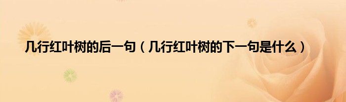 大家好,几行红叶树的后一句,几行红叶树的下一句是什么很多人还不知道,现在让我们一起来看看吧!