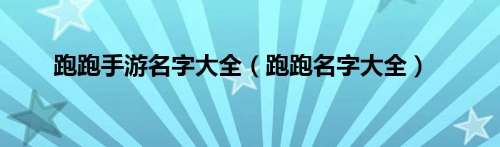 跑跑手游名字大全(跑跑名字大全)