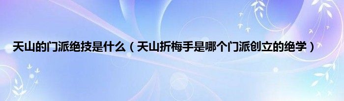 本文,天山的门派绝技是什么,天山折梅手是哪个门派创立的绝学到此就分享完毕,希望对大家有所帮助。
