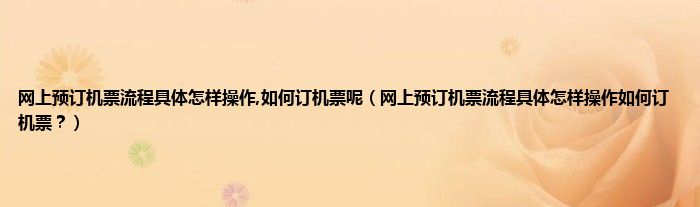 本文,网上预订机票流程具体怎样操作,如何订机票呢,网上预订机票流程具体怎样操作如何订机票?到此就分享完毕,希望对大家有所帮助。