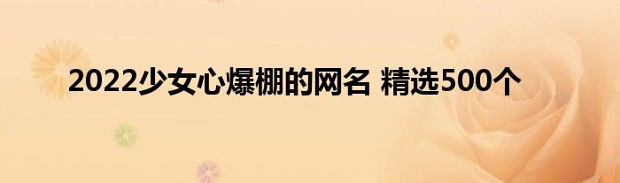 本文,2022少女心爆棚的网名,精选500个到此就分享完毕,希望对大家有所帮助。