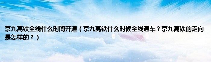 大家好,京九高铁全线什么时间开通,京九高铁什么时候全线通车?京九高铁的走向是怎样的?很多人还不知道,现在让我们一起来看看吧!