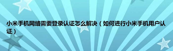 本文,小米手机网络需要登录认证怎么解决,如何进行小米手机用户认证到此就分享完毕,希望对大家有所帮助。