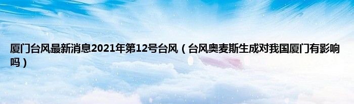大家好,厦门台风最新消息2021年第12号台风,台风奥麦斯生成对我国厦门有影响吗很多人还不知道,现在让我们一起来看看吧!