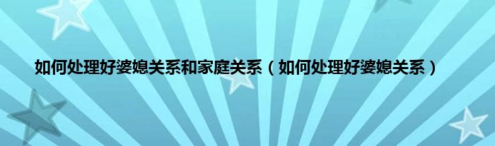 以上就是【如何处理好婆媳关系和家庭关系,如何处理好婆媳关系】相关内容。