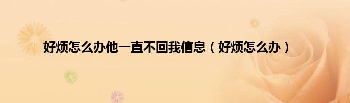 以上就是【好烦怎么办他一直不回我信息,好烦怎么办】相关内容。