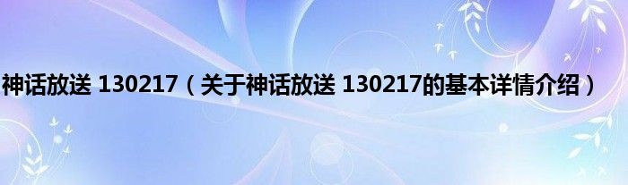 本文关于神话放送 130217的基本详情介绍就讲解完毕,希望对大家有所帮助。
