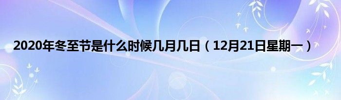 大家好,综合小编来为大家讲解下。2020年冬至节是什么时候几月几日,12月21日星期一这个很多人还不知道,现在让我们一起来看看吧!