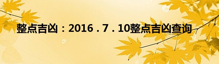 本文整点吉凶:2016 . 7 . 10整点吉凶查询到此分享完毕,希望对大家有所帮助。