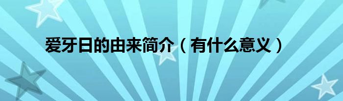 本文爱牙日的由来简介,有什么意义到此分享完毕,希望对大家有所帮助。