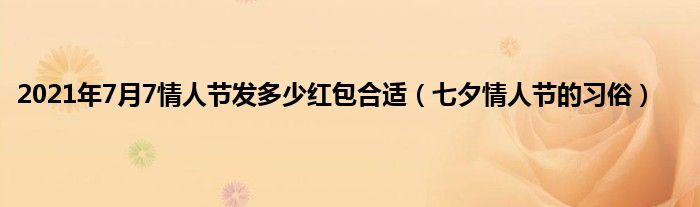 本文2021年7月7情人节发多少红包合适,七夕情人节的习俗到此分享完毕,希望对大家有所帮助。