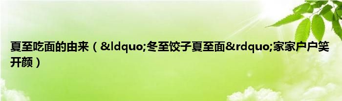 本文夏至吃面的由来,“冬至饺子夏至面”家家户户笑开颜到此分享完毕,希望对大家有所帮助。
