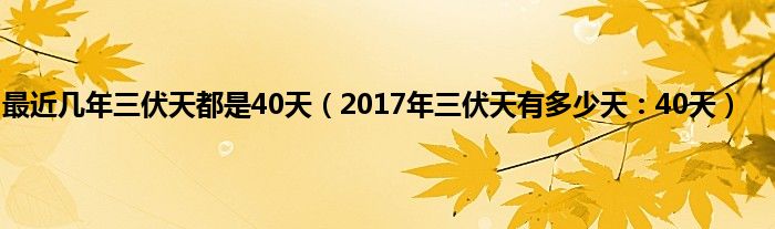 本文最近几年三伏天都是40天,2017年三伏天有多少天:40天到此分享完毕,希望对大家有所帮助。