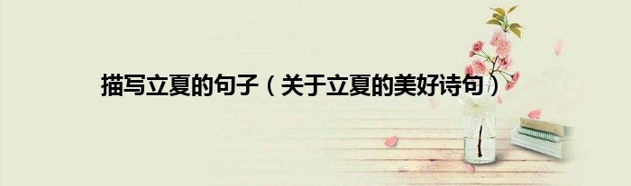 本文描写立夏的句子,关于立夏的美好诗句到此分享完毕,希望对大家有所帮助。