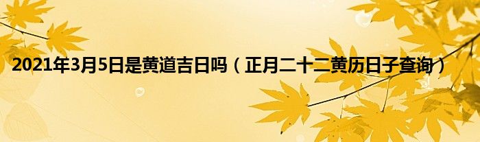 大家好,综合小编来为大家讲解下。2021年3月5日是黄道吉日吗,正月二十二黄历日子查询这个很多人还不知道,现在让我们一起来看看吧!