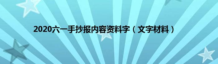 大家好,综合小编来为大家讲解下。2020六一手抄报内容资料字,文字材料这个很多人还不知道,现在让我们一起来看看吧!