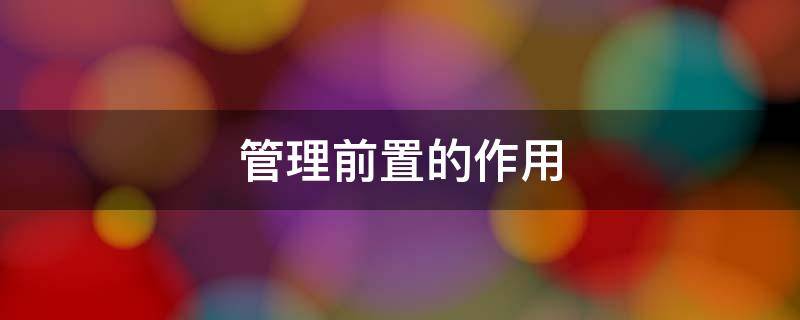 管理前置的作用是有利预防违章、方便日常管理、提高工作效率、降低营运成本、规避营运风险。管理前置在另一方面也称前置管理。前置管理是指日常执法管理工作中不可或缺的一部分,加强前置管理不仅能遏制违章现象的发生,而且能最大限度地方便日常工作,提高工作效率。管理对象包括人员、厂房、场地、设施、设备、物品、产品、程序、标准、规范;管理对象可分为硬件、软件、人员等要素。管理的主要内容是对人员资格、资质、能力进行审查、指导、培训和考核;对硬件进行考察核查;对软件进行审查和验收;对技术标准规范和运行程序进行验证;对产品进行检测、检验、检疫等。