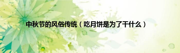大家好,综合小编来为大家讲解下。中秋节的风俗传统,吃月饼是为了干什么这个很多人还不知道,现在让我们一起来看看吧!