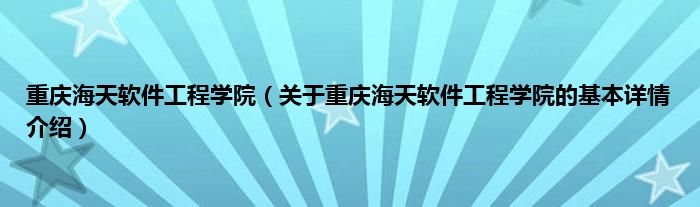 本文关于重庆海天软件工程学院的基本详情介绍就讲解完毕,希望对大家有所帮助。