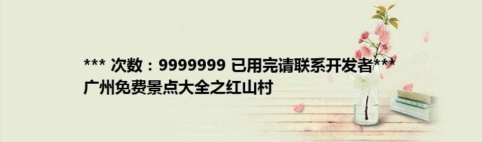 本文*** 次数:9999999 已用完请联系开发者*** 广州免费景点大全之红山村到此分享完毕,希望对大家有所帮助。