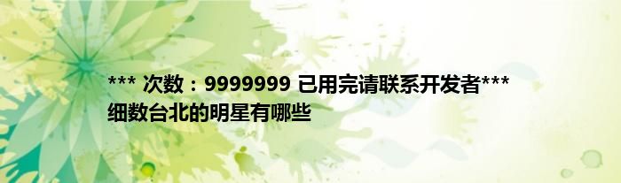 大家好,综合小编来为大家讲解下。*** 次数:9999999 已用完请联系开发者*** 细数台北的明星有哪些这个很多人还不知道,现在让我们一起来看看吧!