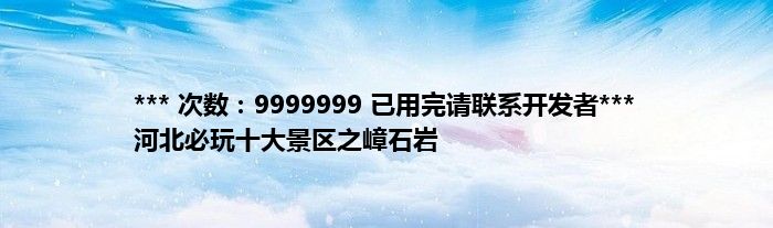 本文*** 次数:9999999 已用完请联系开发者*** 河北必玩十大景区之嶂石岩到此分享完毕,希望对大家有所帮助。