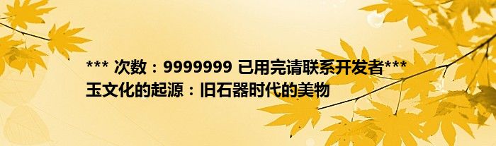 ***次数:9999999已用完请联系开发者***玉文化的起源:旧石器时代的美物