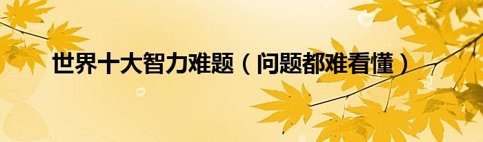 大家好,综合小编来为大家讲解下。世界十大智力难题,问题都难看懂这个很多人还不知道,现在让我们一起来看看吧!