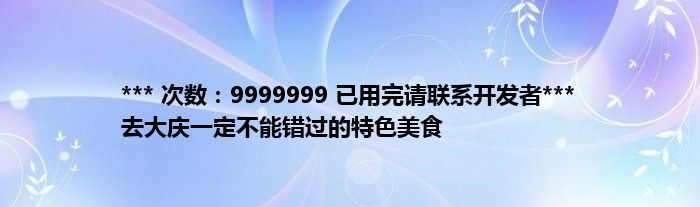 大家好,综合小编来为大家讲解下。*** 次数:9999999 已用完请联系开发者*** 去大庆一定不能错过的特色美食这个很多人还不知道,现在让我们一起来看看吧!