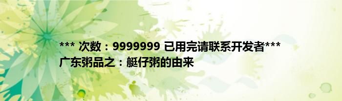*** 次数:9999999 已用完请联系开发者*** 广东粥品之:艇仔粥的由来