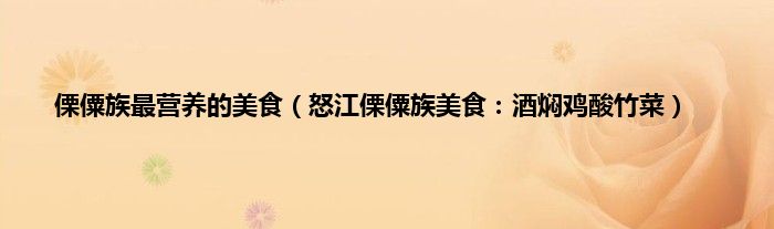 大家好,综合小编来为大家讲解下。傈僳族最营养的美食,怒江傈僳族美食:酒焖鸡酸竹菜这个很多人还不知道,现在让我们一起来看看吧!