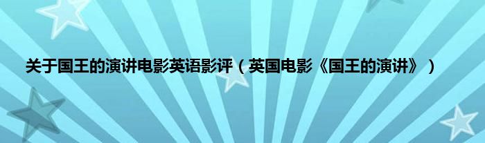 本文关于国王的演讲电影英语影评,英国电影《国王的演讲》到此分享完毕,希望对大家有所帮助。
