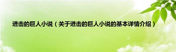 本文关于进击的巨人小说的基本详情介绍就讲解完毕,希望对大家有所帮助。