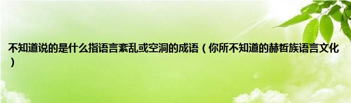 本文不知道说的是什么指语言紊乱或空洞的成语,你所不知道的赫哲族语言文化到此分享完毕,希望对大家有所帮助。
