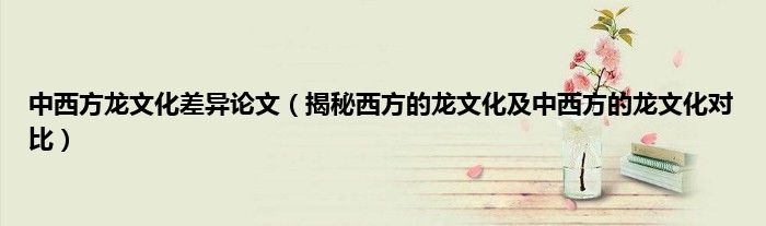 大家好,综合小编来为大家讲解下。中西方龙文化差异论文,揭秘西方的龙文化及中西方的龙文化对比这个很多人还不知道,现在让我们一起来看看吧!