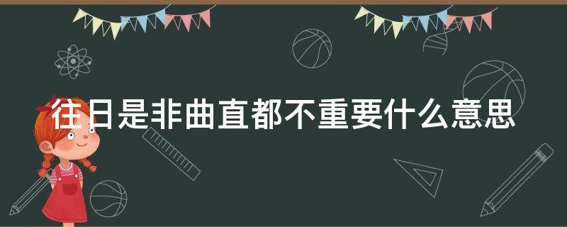 往日是非曲直都不重要的意思是以前的那些对错都不重要,应该往前看。是非曲直,汉语成语,意思是事情的对错、有理或无理,指对事物的评断。出自汉王充《论衡-说日篇》:二论各有所见,故是非曲直未有所定。近义词有青红皂白、是非黑白等。是非曲直在生活中常用于形容对事物好坏的评断,例如:这件事情发生的太蹊跷,是非曲直,等人们都到了才有公论,你这样急着下定论是为了什么?