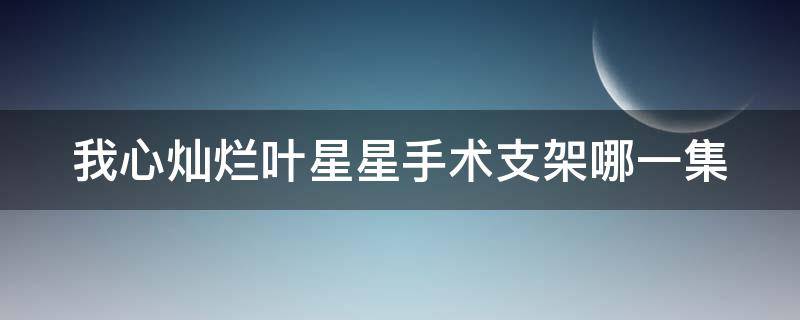 我心灿烂叶星星手术支架在第34集。在剧中,星星手术前给家仁留下袒露心声的信件,家仁心情复杂,但好在星星终于手术顺利完成。家慧要卖掉房子跟欧阳去浪迹天涯,开始新的生活,欧阳终于被打动。《我心灿烂》是由中央电视台、北京响巢国际传媒股份有限公司、电广传媒文化发展有限公司、云南电影集团有限公司联合出品,并由孙艳华执导,王志文、王思思主演的年代偶像剧。该剧讲述了主人公赵方圆用自己的一生坚守他对诚信的底线,他和他的家庭历经三十多年风雨和悲欢离合,信守着这一份珍贵的承诺的故事。