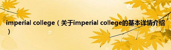 本文关于imperial college的基本详情介绍就讲解完毕,希望对大家有所帮助。