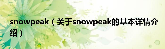 本文关于snowpeak的基本详情介绍就讲解完毕,希望对大家有所帮助。