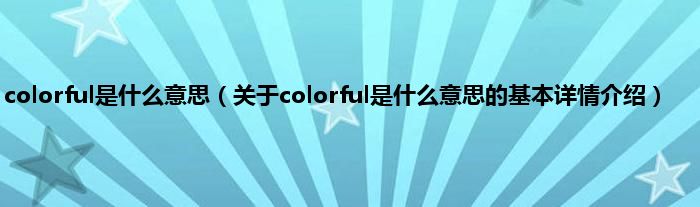 本文关于colorful是什么意思的基本详情介绍就讲解完毕,希望对大家有所帮助。