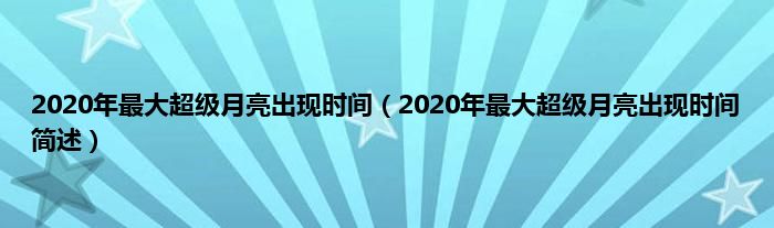 欢迎观看本篇文章,小升来为大家解答以上问题。2020年最大超级月亮出现时间,2020年最大超级月亮出现时间简述很多人还不知道,现在让我们一起来看看吧!