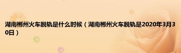 欢迎观看本篇文章,小升来为大家解答以上问题。湖南郴州火车脱轨是什么时候,湖南郴州火车脱轨是2020年3月30日很多人还不知道,现在让我们一起来看看吧!