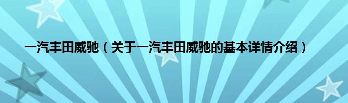 本文关于一汽丰田威驰的基本详情介绍就讲解完毕,希望对大家有所帮助。