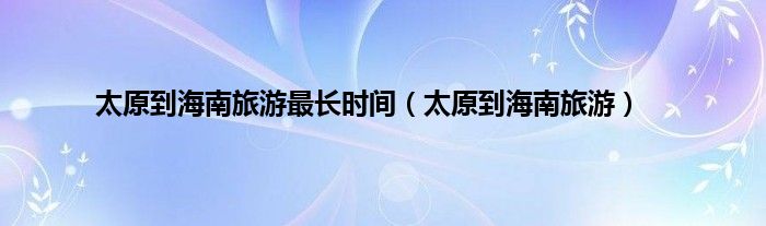 以上就是【太原到海南旅游最长时间,太原到海南旅游】相关内容。
