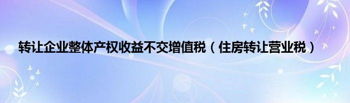 大家好,小问来为大家解答以上问题。转让企业整体产权收益不交增值税,住房转让营业税这个很多人还不知道,现在让我们一起来看看吧!