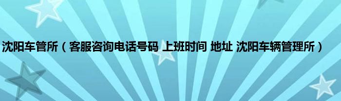 大家好,综合小编来为大家讲解下。沈阳车管所,客服咨询电话号码 上班时间 地址 沈阳车辆管理所这个很多人还不知道,现在让我们一起来看看吧!