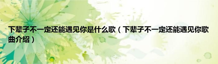 欢迎观看本篇文章,小升来为大家解答以上问题。下辈子不一定还能遇见你是什么歌,下辈子不一定还能遇见你歌曲介绍很多人还不知道,现在让我们一起来看看吧!