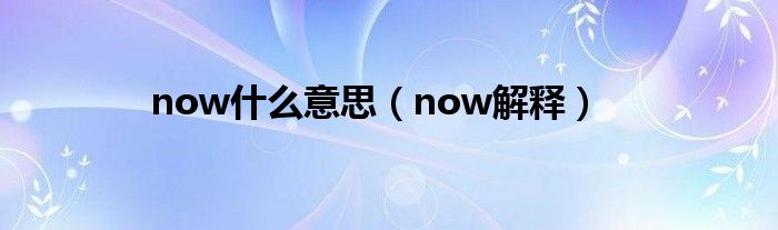 欢迎观看本篇文章,小升来为大家解答以上问题。now什么意思,now解释很多人还不知道,现在让我们一起来看看吧!
