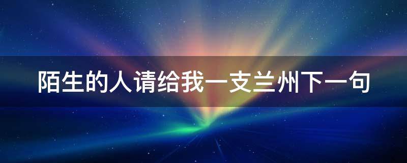 陌生的人请给我一支兰州下一句是:所以那些可能都不是真的,董小姐,你才不是一个没有故事的女同学。这是歌曲《董小姐》中的一句歌词,《董小姐》是宋冬野创作并演唱的歌曲,收录在摩登天空2012年12月27日发行的合辑《摩登天空7》中。2014年3月31日,该曲获第21届东方风云榜最佳作词奖和十大金曲奖。