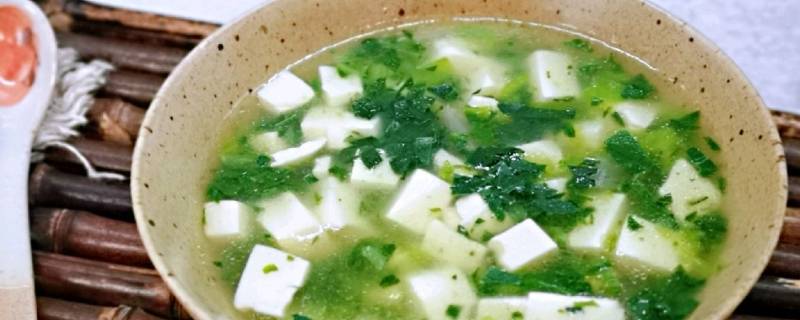 青菜白豆腐称作青菜豆腐汤,是一道常见的中式家常菜肴。通常采用鲜嫩的青菜和口感绵软的白豆腐搭配,配以各种调料和汤汁,做出来的菜肴口感清淡、爽口、营养丰富。豆腐是一种营养丰富又历史悠久的食材,大众对豆腐的喜爱推动了豆腐制作工艺的前进和发展。豆腐主要的生产过程一是制浆,即将大豆制成豆浆;二是凝固成形,即豆浆在热与凝固剂的共同作用下凝固成含有大量水分的凝胶体,即豆腐。豆腐内含人体必需的多种微量元素,还含有丰富的优质蛋白,素有植物肉之美称。